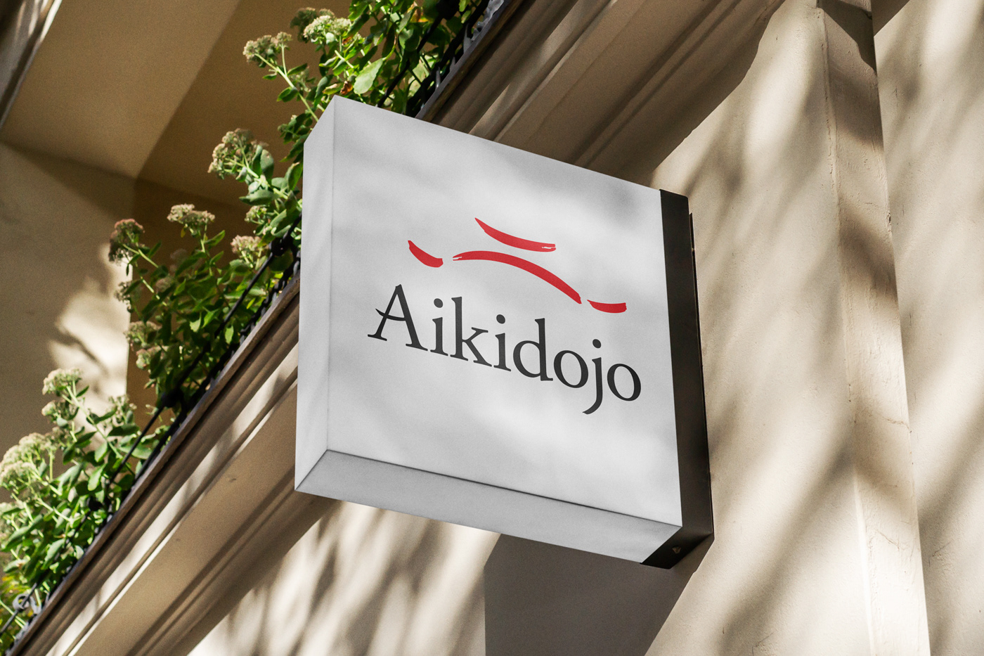The Aikidojo identity is built from three elements: Aikido philosophy, the dojo’s unique architecture, and the Japanese Enso symbol. The mark abstracts the distinctive roof structure of the space, while the custom typography incorporates brush-inspired strokes reflecting balance and flow in Japanese philosophy.
