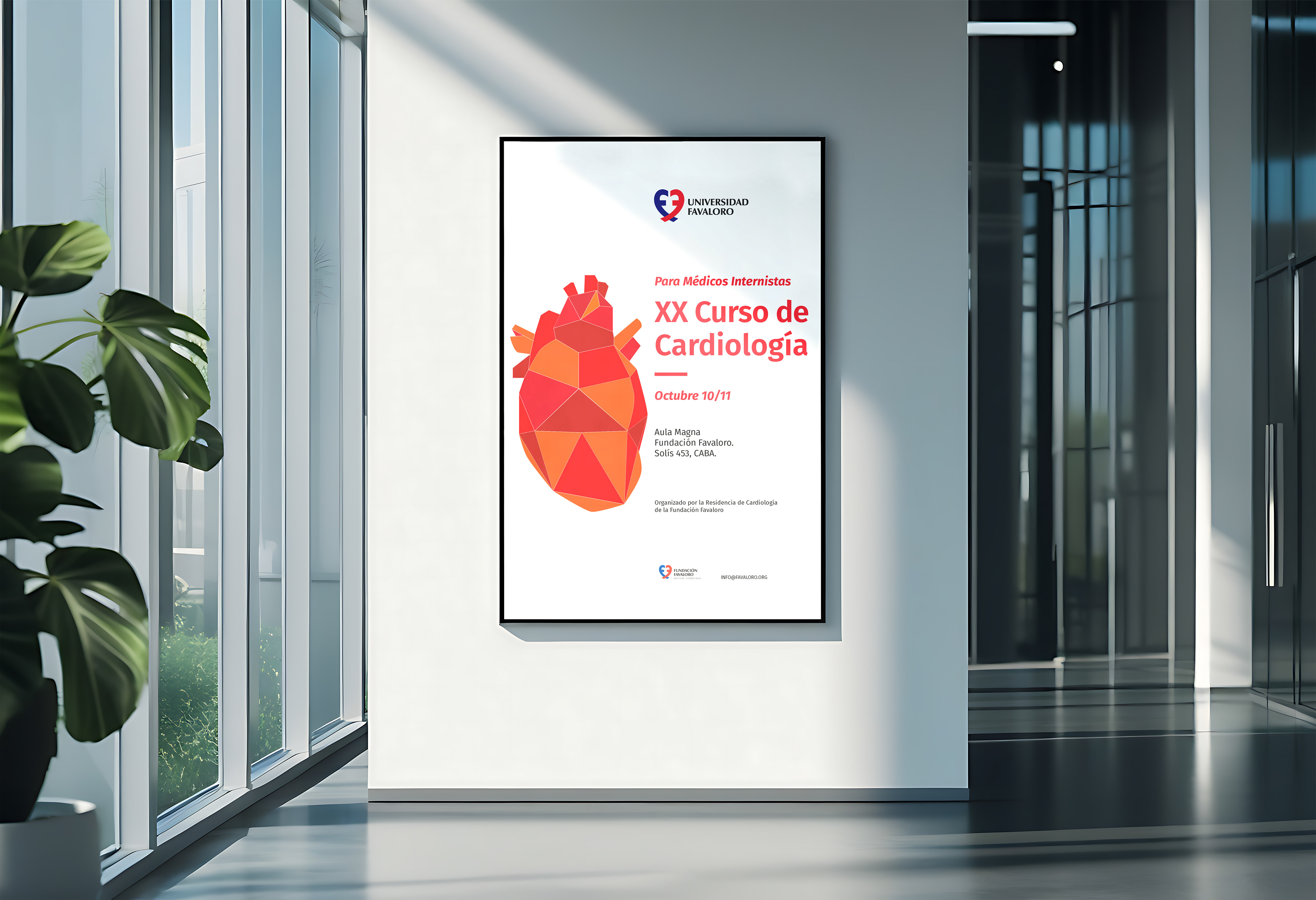 This project presents the institutional communication work developed for Fundación Favaloro, including event posters, medical congress materials, internal communication pieces, and stationery.